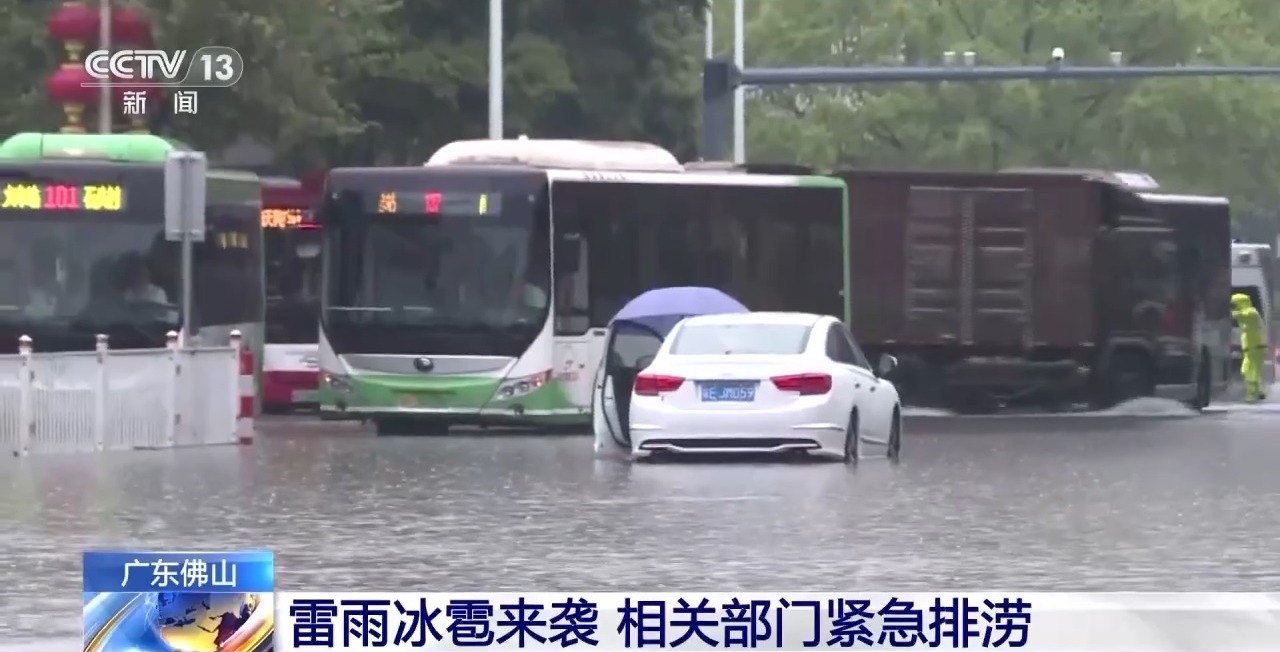 昨天(4月6日)上午,广东佛山多地出现雷雨、冰雹天气,多处路段出现积水。