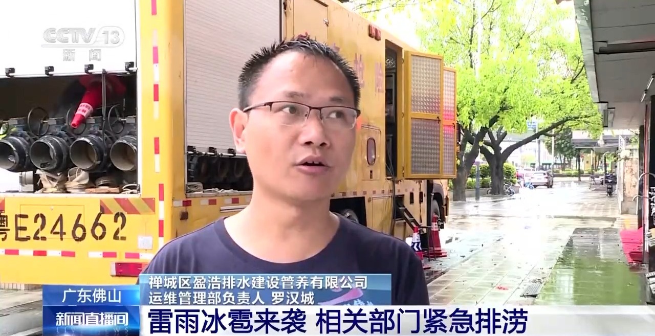 禅城区盈浩排水建设管养有限公司运维管理部负责人 罗汉城:排涝车第一时间开起来,增加应急排涝能力,还有其他同事及时把雨水格栅打开,有些道路上的主井都打开了,增强排水能力。