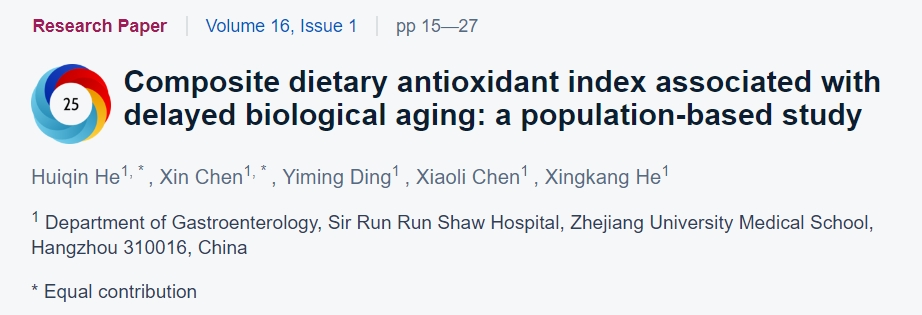 2024年1月,浙江大学医学院附属邵逸夫医院陈小丽、何兴康等人在《老龄化》(Aging)期刊上发表的研究显示,摄入抗氧化饮食,延迟生物衰老,与评分最低的参与者相比,最高的参与者表型年龄减少0.52年。