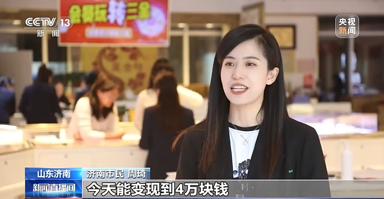 济南市民 赵菲:今天卖了接近80克,卖了4万多块钱,当初买这些的时候花了不到3万块钱。