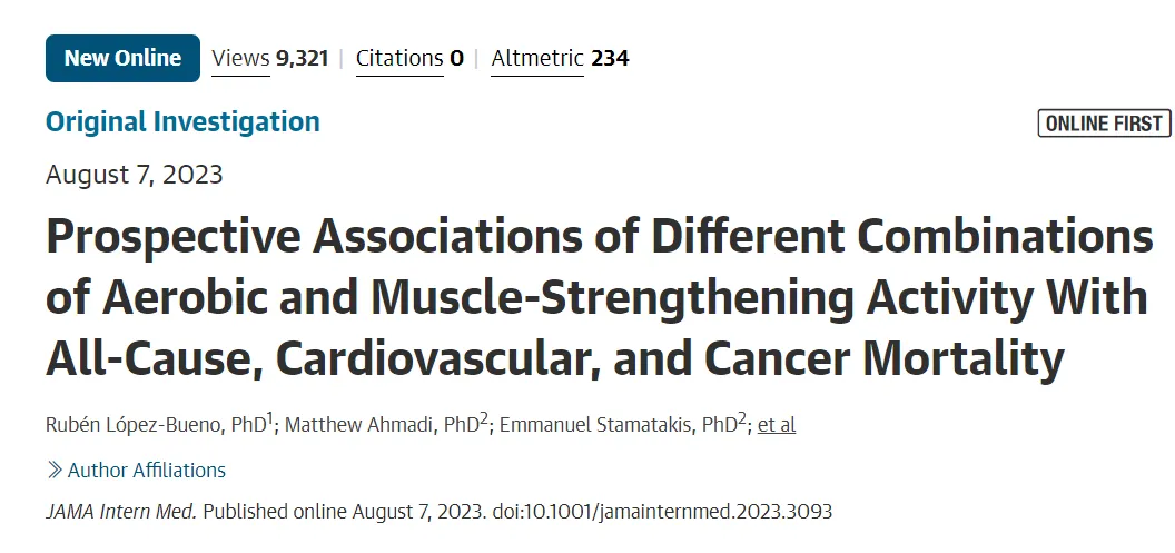 2023 年 8 月,《美国医学会内科医学》期刊上发表了一篇研究,这项研究为 40 岁以上人群运动方式提供了指导。这项研究纳入了 50 万成年人,参与者平均年龄 46 岁,找出了这个年龄段的人们选择最适合的运动方式。