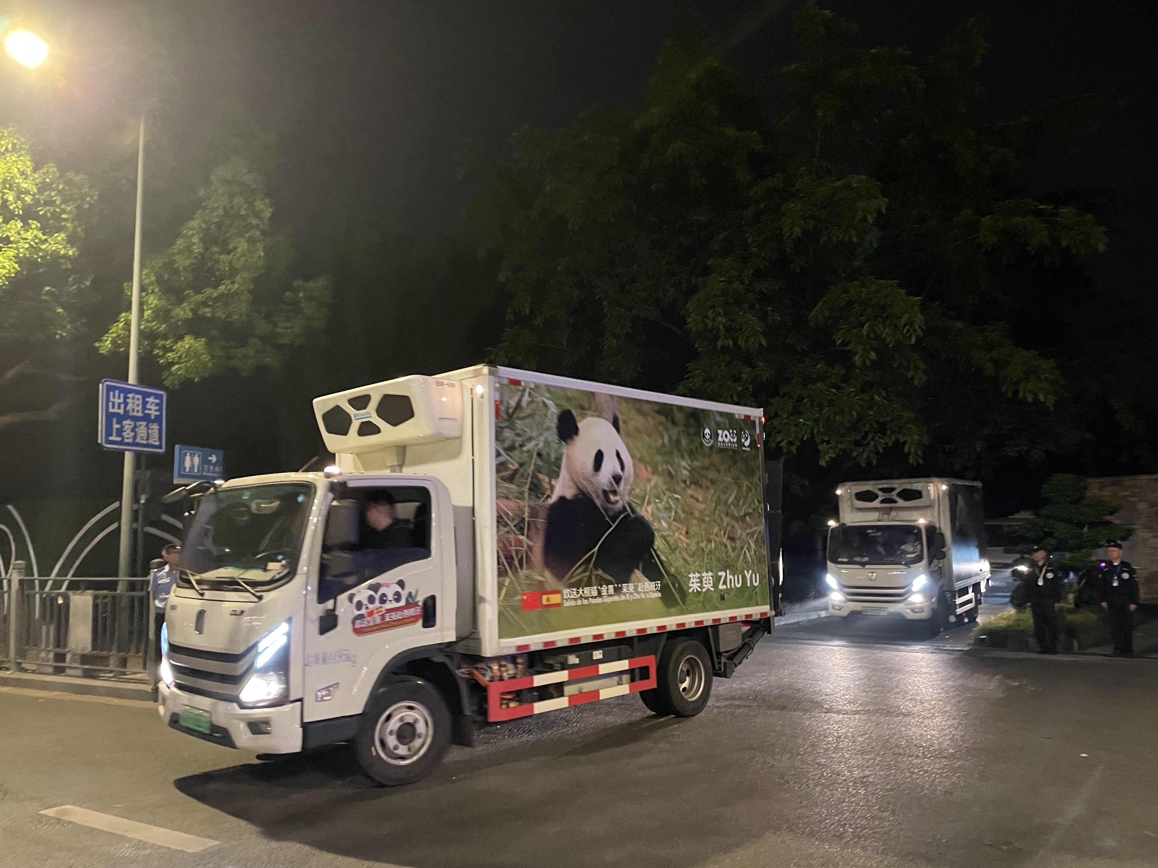 4月29日11时25分,大熊猫“金喜”“茱萸”搭乘专机从成都双流国际机场起飞前往西班牙。