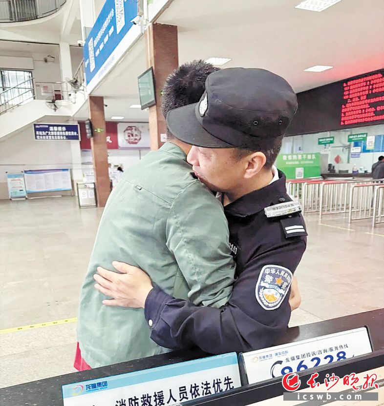 谭治国问道:“你现在打算怎么办?”小伙子有点不好意思地说:“我想回岳阳老家,但现在身上现金不够。”谭治国安慰他说:“不打紧,这是小事情!”随后与车站协商,为小伙子妥善购置了返回老家的车票。这时,小伙子再次泪流满面,他说:“警察大哥,我能抱抱你吗?”谭治国慷慨地张开了双臂,接受了他的拥抱。