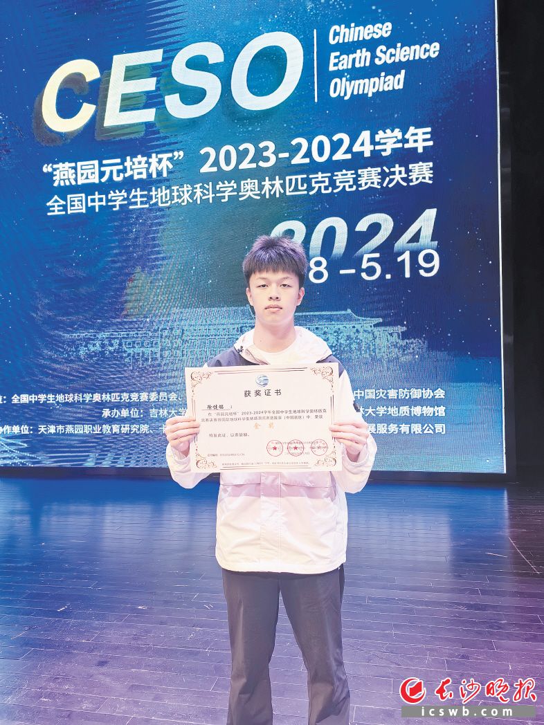 长沙晚报5月22日讯(全媒体记者 岳霞 通讯员 单志仟)“这是一次意外的惊喜,也是实力的见证!参赛的269个队员都是来自全国各地的翘楚,个个都是地理学科的佼佼者。”在刚刚结束的“燕园元培杯”2023-2024学年全国中学生地球科学奥林匹克竞赛决赛暨国际地球科学奥林匹克竞赛选拔赛(中国赛区)中,长郡梅溪湖中学G2204班徐健铭同学以优异的成绩,勇夺金牌!听闻喜讯,教练谭梦君激动地说。