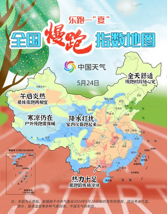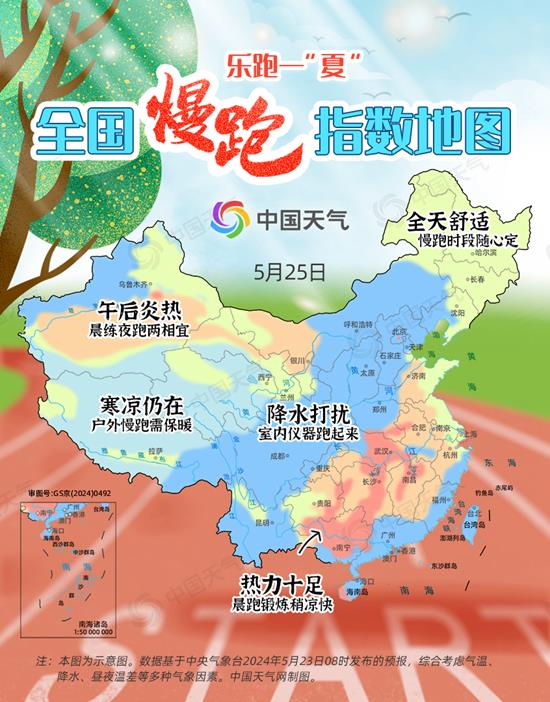 眼下,我国多地陆续步入夏季,天气转热,各地的跑道逐渐热闹起来,跑步人群大规模出动,线上打卡数据也十分活跃。不过,夏季气温高、雨水多,户外慢跑易受天气因素的制约,哪里全天适合畅跑?哪里适合晨练夜跑?中国天气网特别推出全国慢跑指数地图,助你畅快乐跑。