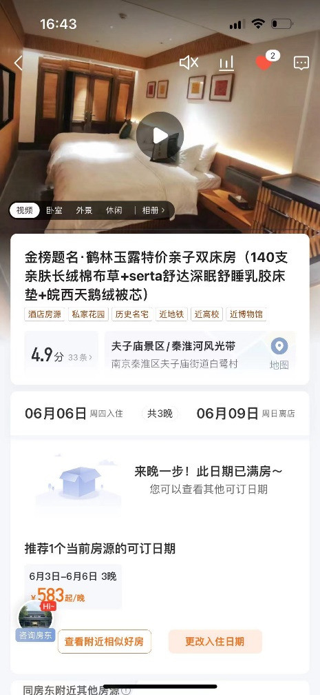 除了酒店,今年高考生的家长们思路也“打开”了,不少人选择距离考场更近、环境更温馨、还可以洗衣做饭的民宿陪考。