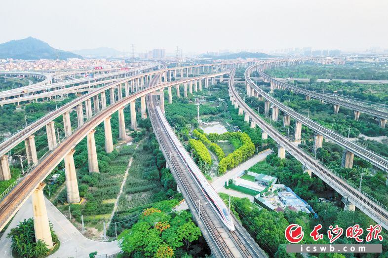 6月15日后,长沙到粤港澳大湾区的广州、深圳、香港、珠海等主要城市,分别最快1小时59分、2小时37分、2小时56分、3小时24分可达。长沙晚报通讯员 夏力文 供图