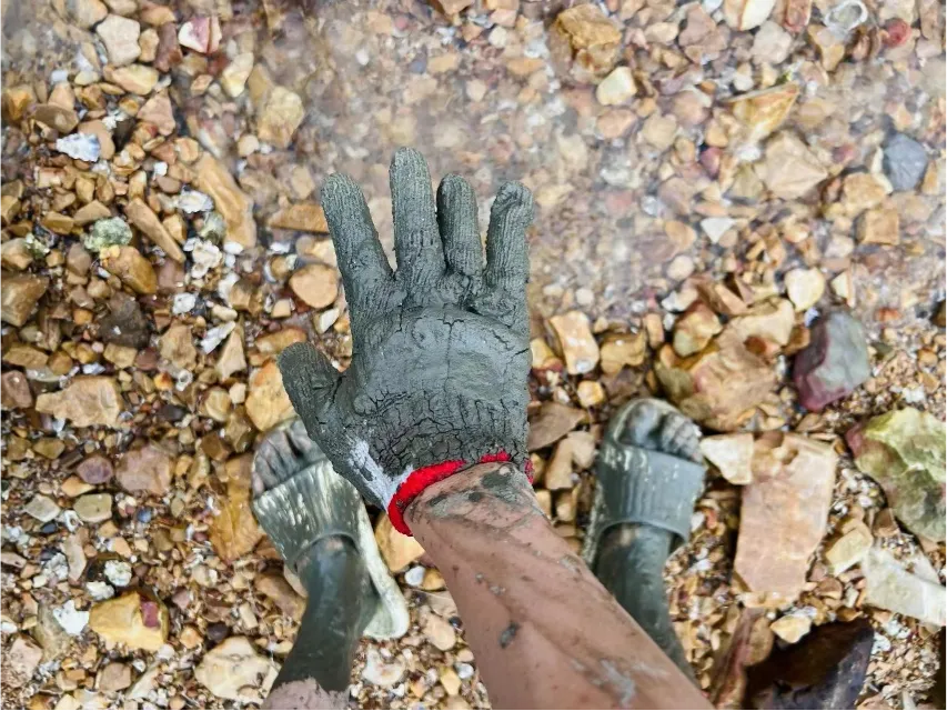 在淤泥里挖贝类脚被割伤(来源:作者拍摄)