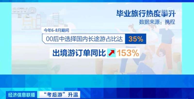 数据显示,今年6-8月期间,“00后”中选择国内长途游的占比达到35%,出境游订单同比增长153%。