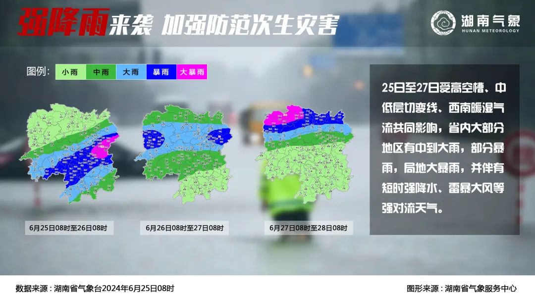 1.重点防范湘江中下游、资水、沅水、澧水及洞庭湖区流域性洪涝及中小河流洪水风险。建议加强江河湖库水情监测和管理,及流域防汛应急准备工作。2.强降雨落区在湘北、湘中地区高度重叠,加强防范局地强降雨和持续性强降雨诱发的山洪、地质灾害、城乡积涝等次生灾害,及国省干道、高速公路需防范局部边坡塌方风险。建议加强灾害隐患点、风险区的巡查排险。
