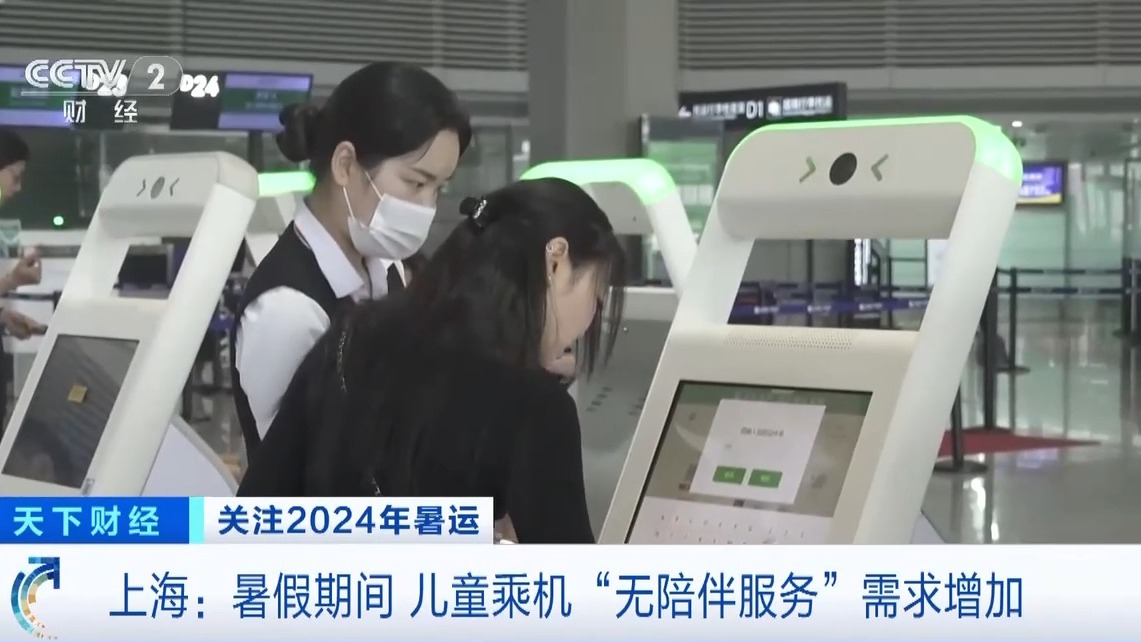在上海虹桥机场1号航站楼的值机柜台,9岁的姚任泱,正在妈妈的陪同下,办理无陪伴儿童登机手续。他暑假期间参加了夏令营,要独自一人乘坐飞机到青海。此外也有很多儿童,因父母无暇陪伴照顾,需要回老家过暑假。机场负责人告诉记者,随着暑运开启,无成人陪伴的单飞儿童数量明显增加,以春秋航空为例,大概每天都会有七八十位“无陪儿童”乘坐飞机,这个情况将持续至7月中上旬。