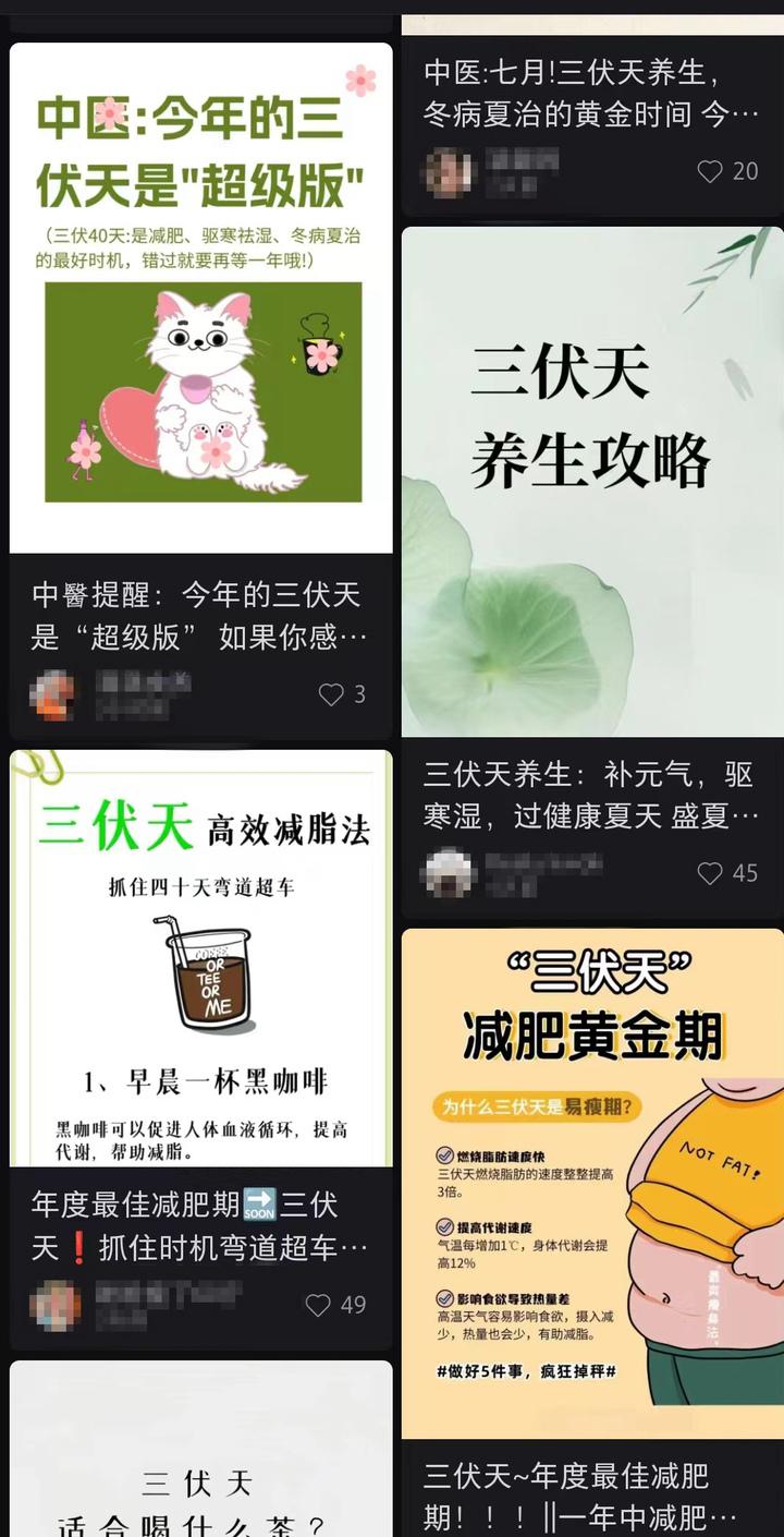 社交媒体平台上有不少关于三伏天养生、减肥的讨论。