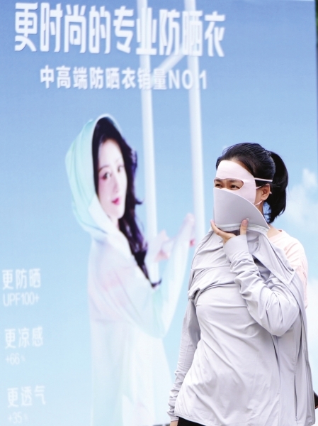 连续的高温天气,让消费者更加注重物理防晒,街头“全副‘捂’装”防晒的市民越来越多。