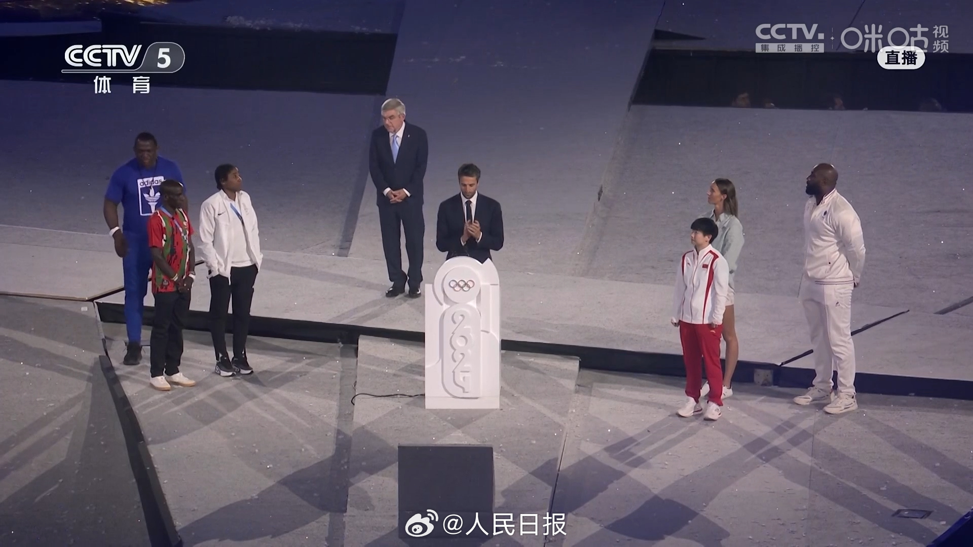 巴黎奥运会闭幕式上,中国乒乓球运动员孙颖莎作为亚洲的运动员代表出场。