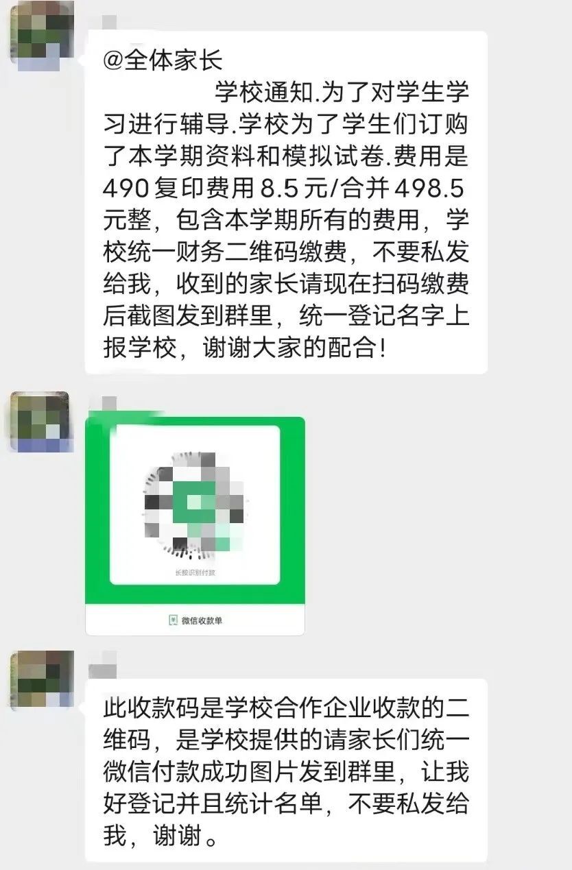 进群后,骗子常常会查看群友信息,找到班主任,下载并更换相同头像、复制其昵称,“摇身一变”,成为一个高仿的“假”班主任。群内收款功能方便快捷,家长通常都很配合,看到发布的通知,就会积极响应并付款。有时“真”班主任查看消息不及时,于是多名家长被骗……