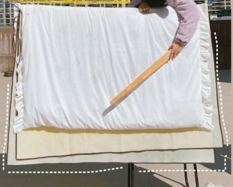棉被中的棉花容易受潮且放湿慢,需要经常晾晒,最好每隔两周晒一次。并且晾晒后需要用双手轻轻拍打,使其恢复蓬松状态,大概晒3~4个小时为宜。