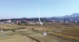 “1、2、3,点火!”第二天,他和爸爸又来到田里,他模仿着电视里看到的火箭发生场景。这一次,他自制的“火箭”终于一飞冲天,并完成了回收。