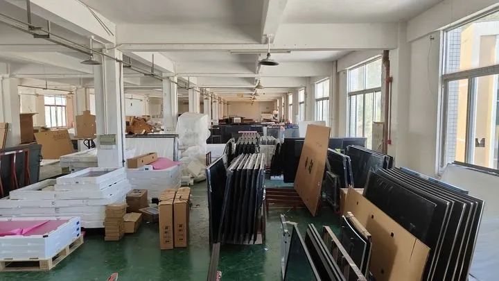 专案组查处违法组装电视机的车间时发现,库房内堆积着大量电视机外壳、主板和白板显示屏,还有很多品牌透明贴纸,以及部分准备发出和退回的假冒品牌电视机。