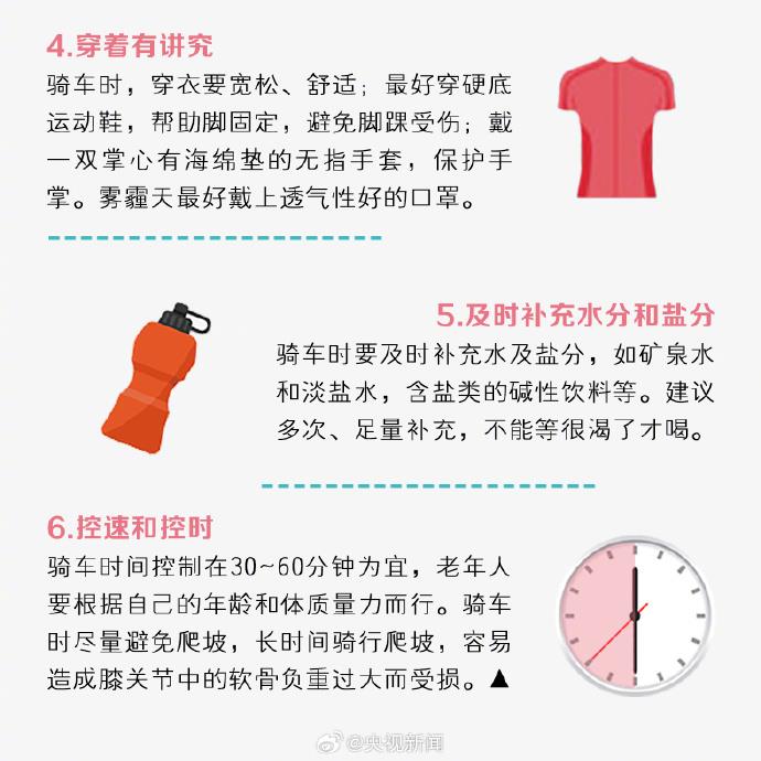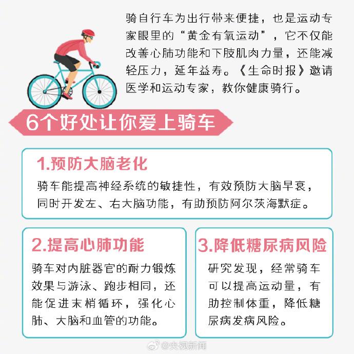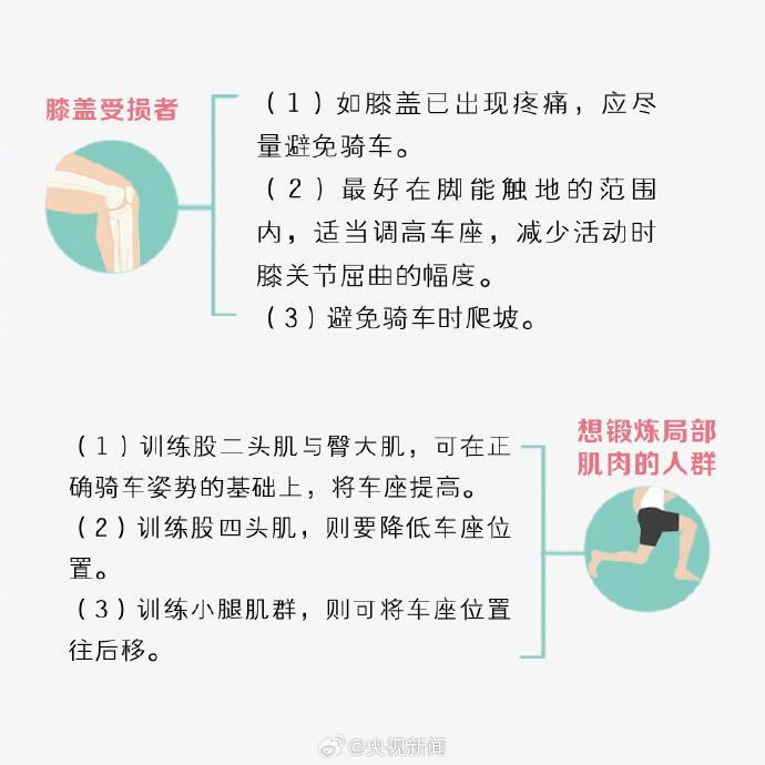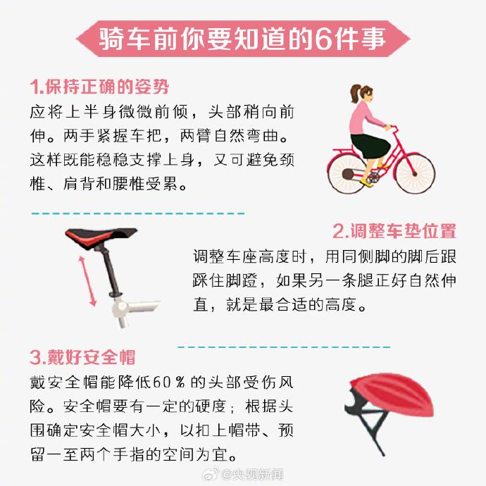 9月17日是世界骑行日。骑行被称为“黄金有氧运动”,既能锻炼身体,还能减压。骑车时,车座调多高才合适?什么样的姿势不伤膝盖?骑行时间越长,锻炼效果越好吗?不同人群骑车锻炼都要注意什么?分享给爱好骑行的TA!秋高气爽,一起出发吧~
