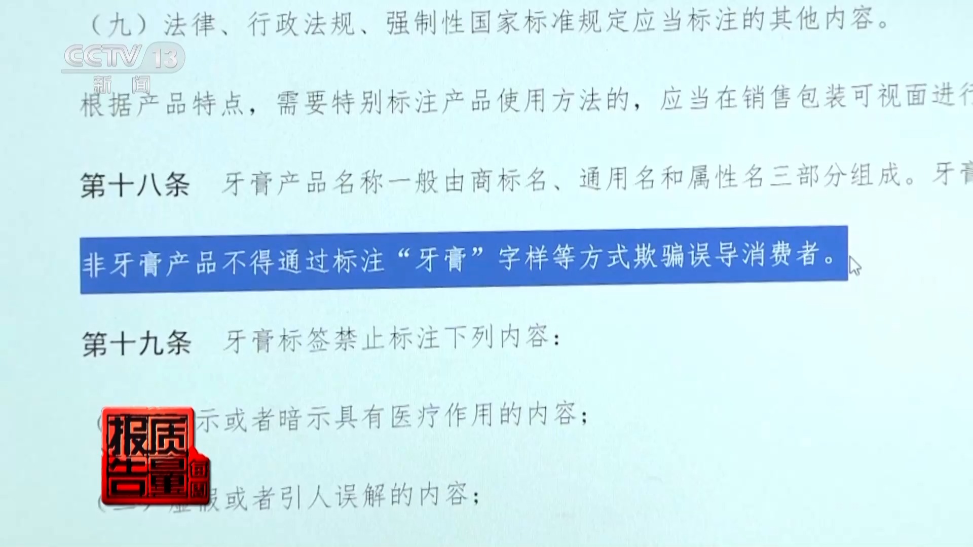 记者了解到,2023年市场监管总局发布的《牙膏监督管理办法》明确指出,牙膏禁止明示或者暗示具有医疗作用的内容。
