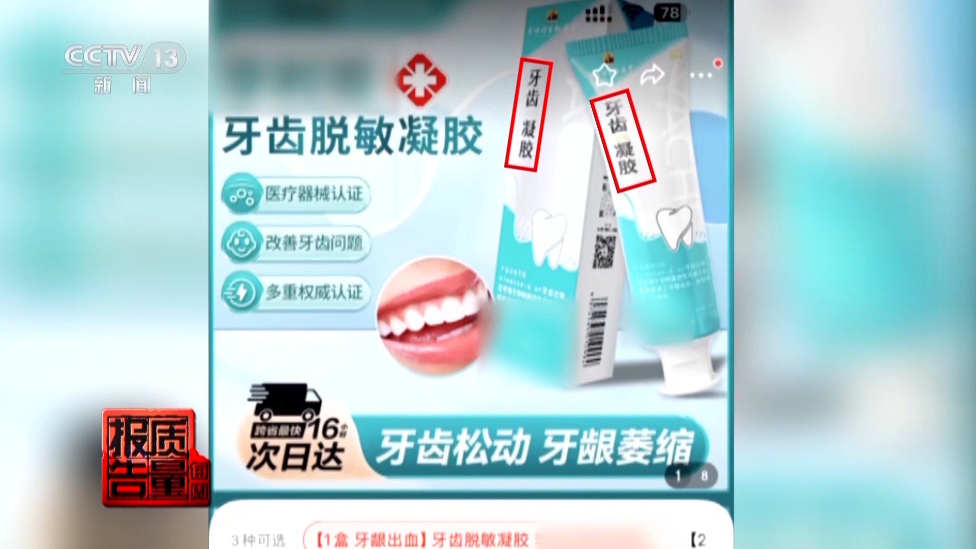 为深入了解牙膏市场的一些现象,记者随同江苏省消保委对牙膏市场展开了进一步的调查,发现非牙膏产品以普通牙膏的名义销售的现象并非个例。有的产品包装是牙齿凝胶,但是销售标题显示是牙膏医用;有的产品包装标注的是口腔抑菌膏,但是销售页面标注为牙膏。