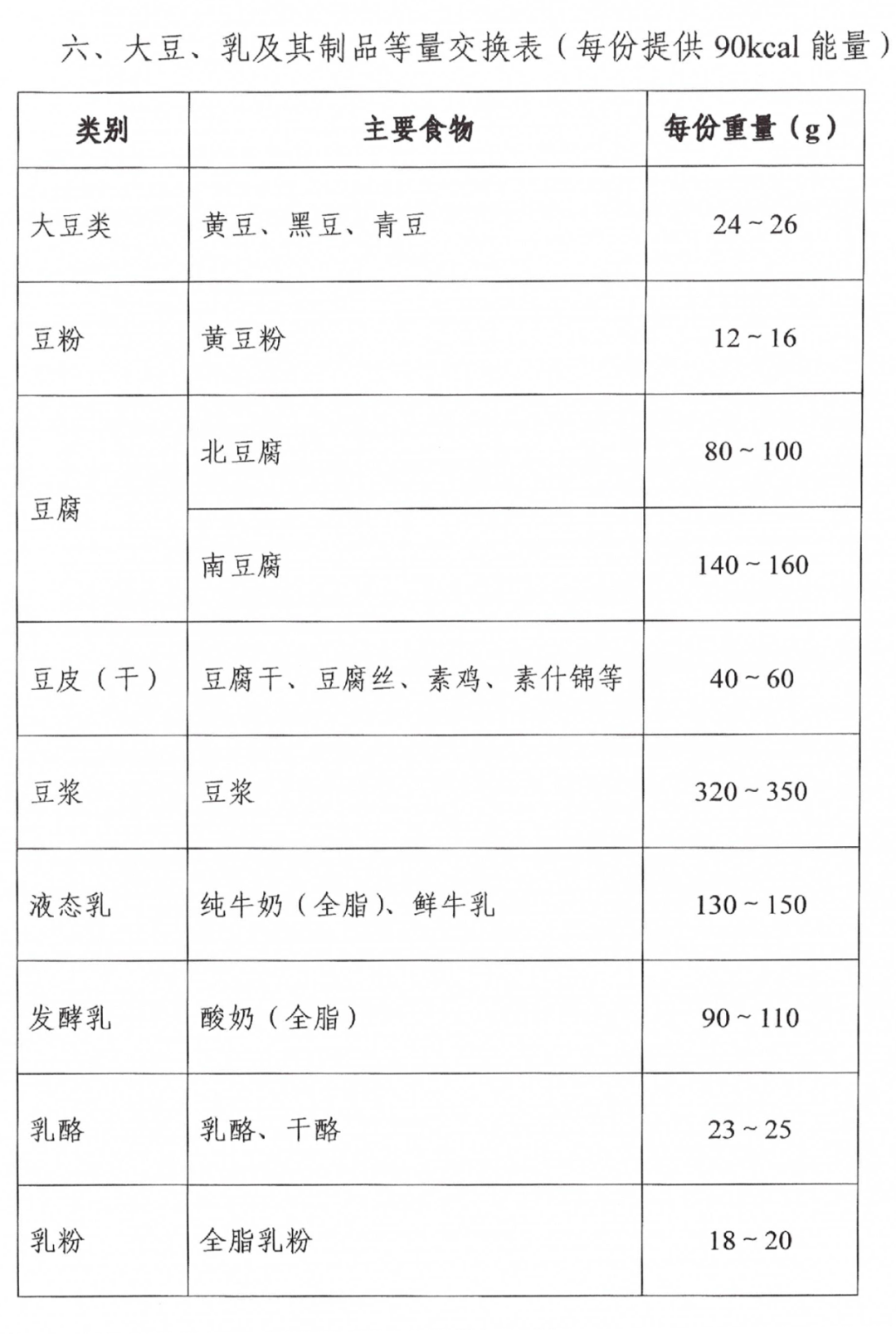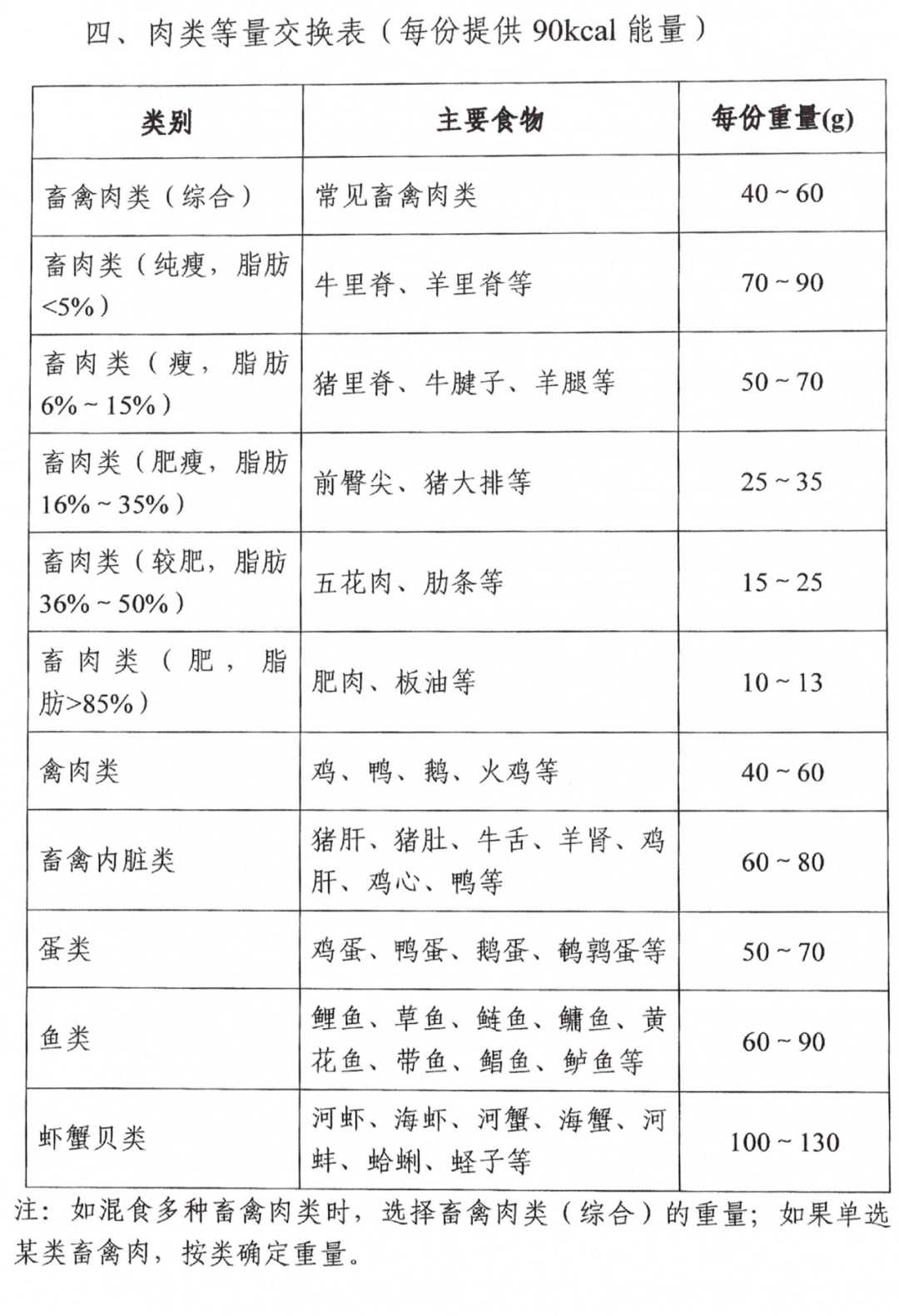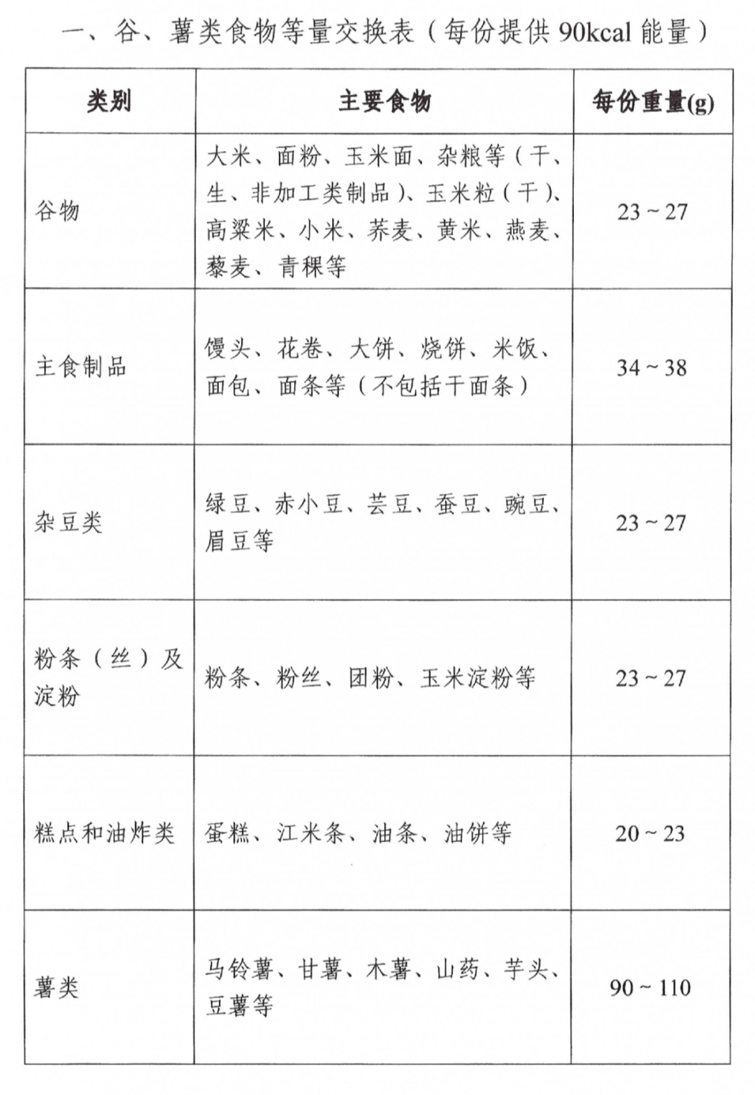 附录一:常见食物交换表(以可食部计)
