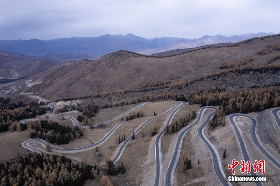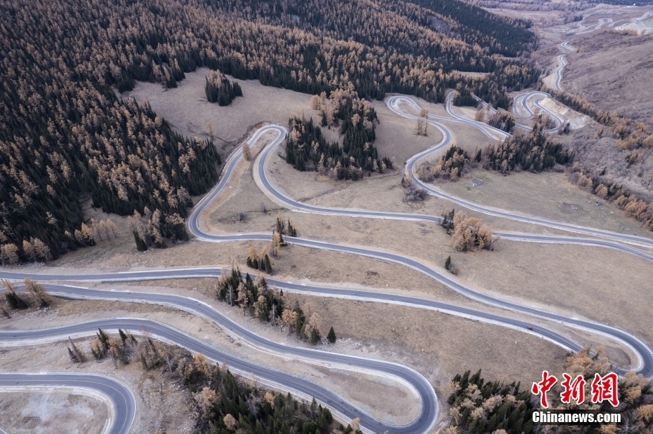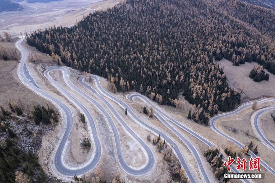 10月7日,新疆阿勒泰,阿禾公路盘旋山间。