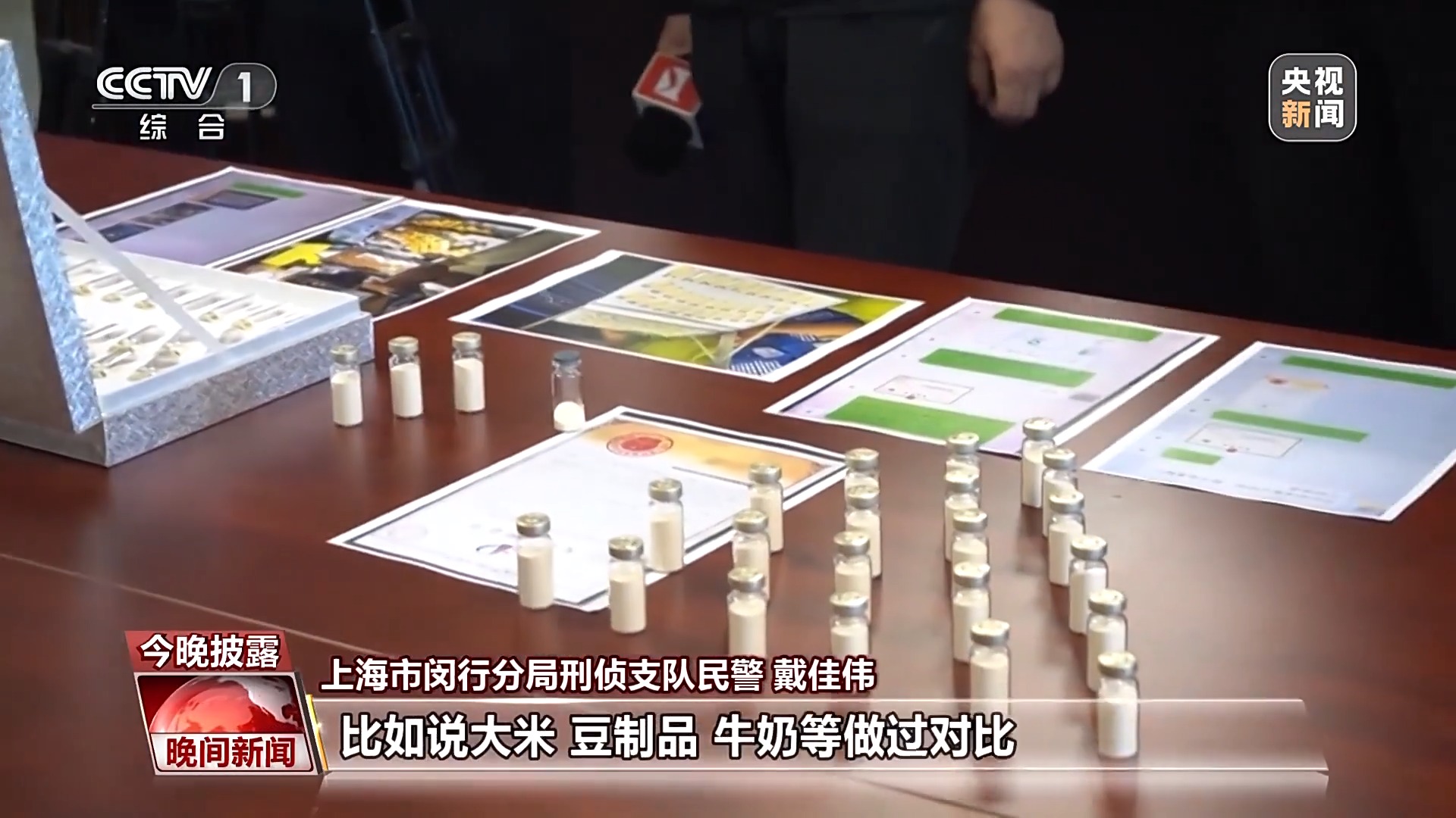 上海市闵行分局刑侦支队民警 戴佳伟:我们对所谓的增高粉做过相应成分的检验,的确含蛋白质和钙含量,但是我们也与日常食物,比如大米、豆制品、牛奶等做过对比,远不如我们正常食用的食物。