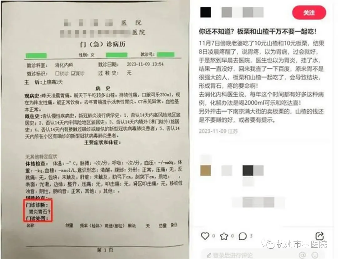 他还在社交平台上晒出了诊断单据,并提醒大家板栗和山楂不要一起吃。