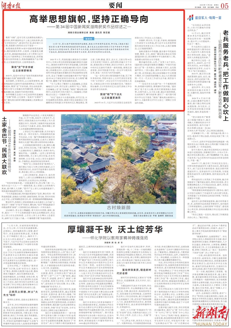 11月7日,第34届中国新闻奖评选揭晓,湖南15件新闻作品获奖。即日起,《湖南日报》推出第34届中国新闻奖湖南获奖作品综述,展示我省主流媒体坚持以习近平新时代中国特色社会主义思想为指导,贯彻习近平文化思想,在媒体深度融合发展大潮中坚持精品创作的可喜成就,展现湖南新闻战线坚持守正创新、履行职责使命的生动实践。