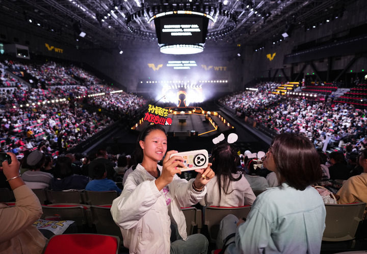 2024年10月3日,观众来到首钢园区观看世界乒乓球职业大联盟(WTT)中国大满贯赛。新华社记者 张晨霖 摄