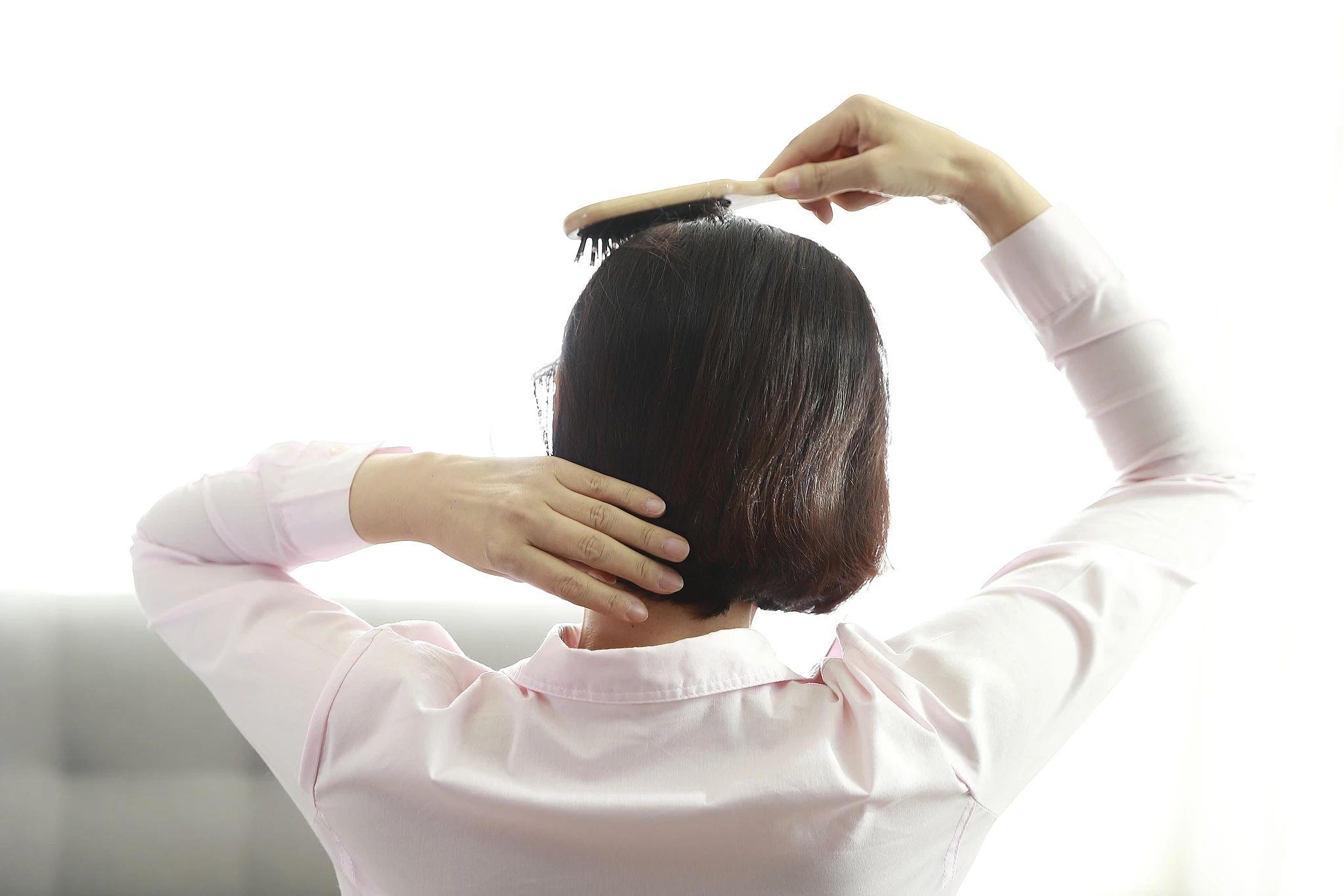 1.使用木梳,从前往后梳头,约2~3分钟;