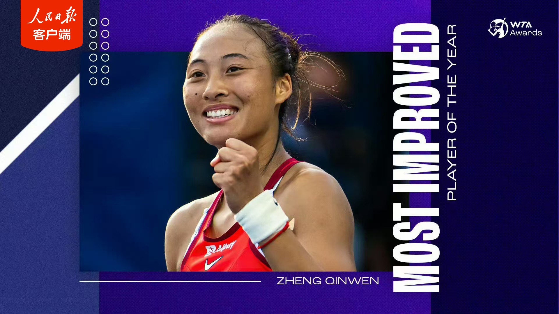 郑钦文入围WTA年度最佳球员候选名单