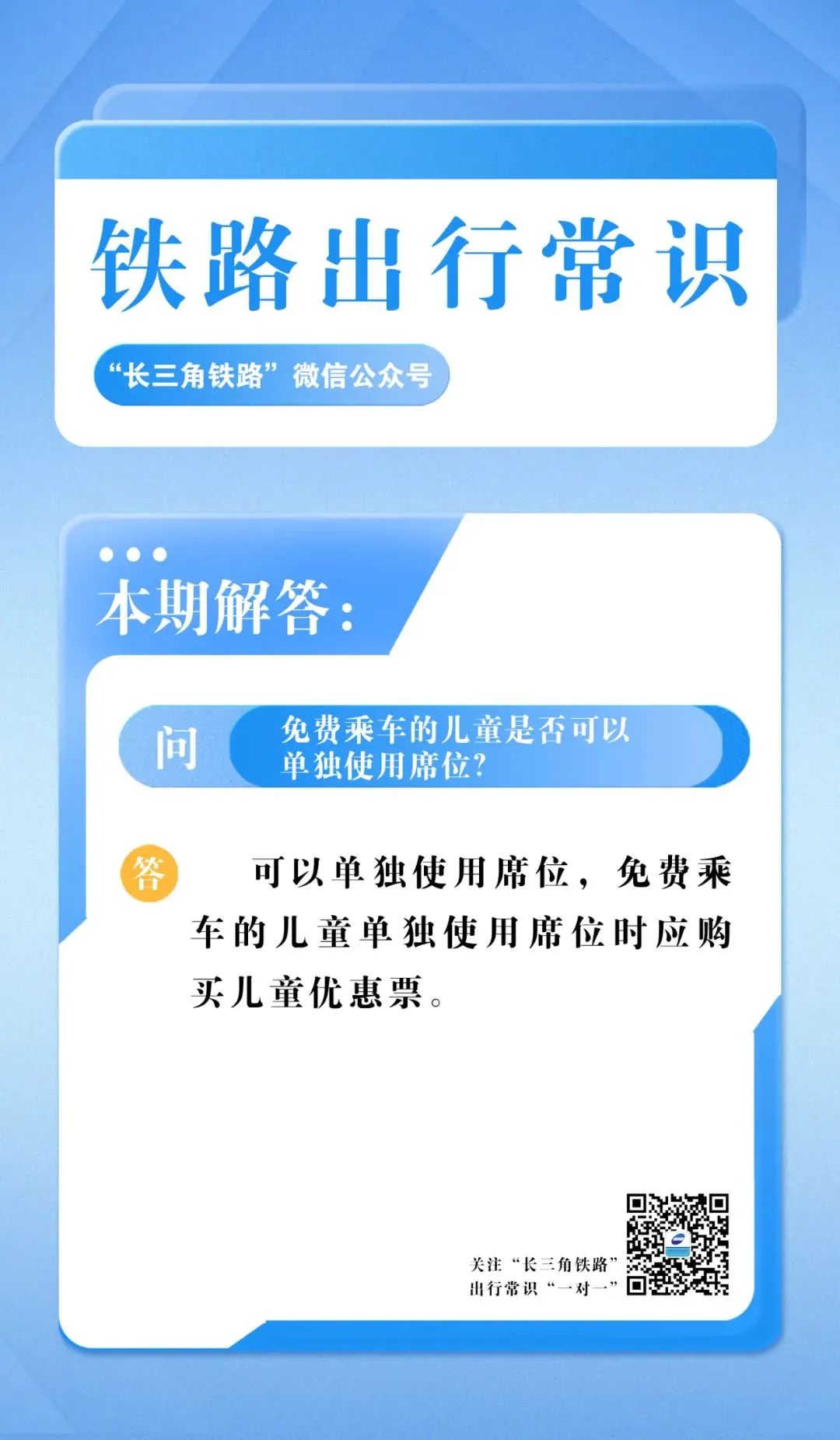 可以单独使用席位,免费乘车的儿童单独使用席位时应购买儿童优惠票。