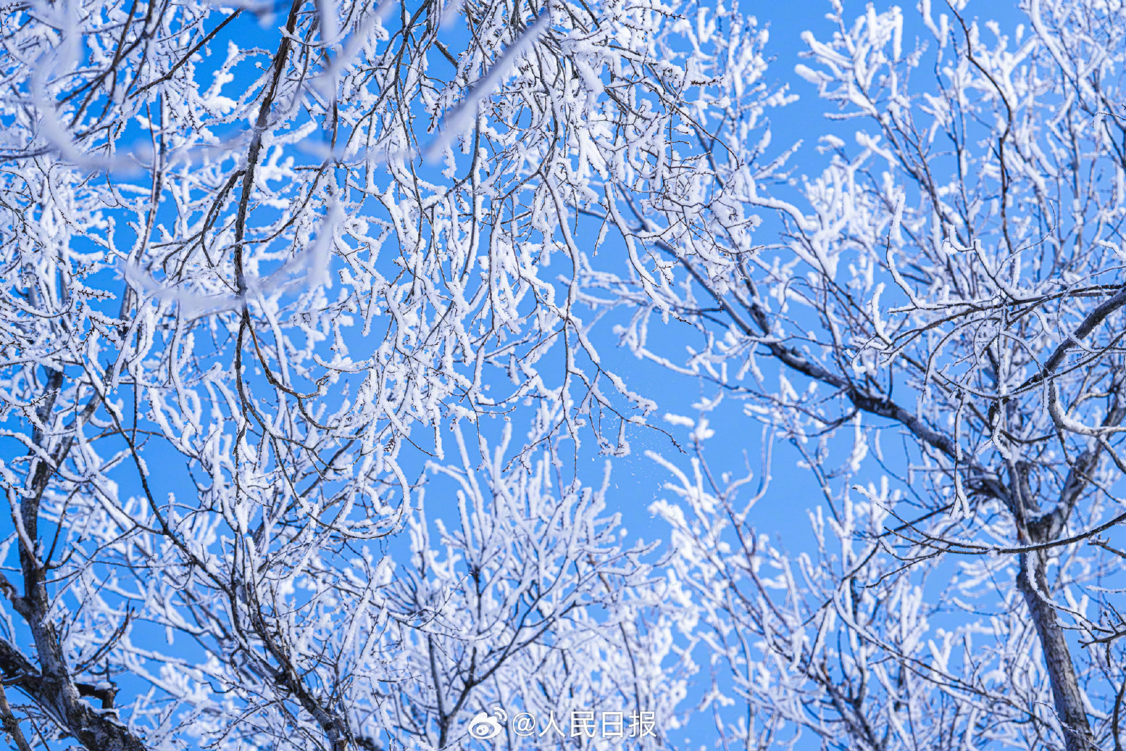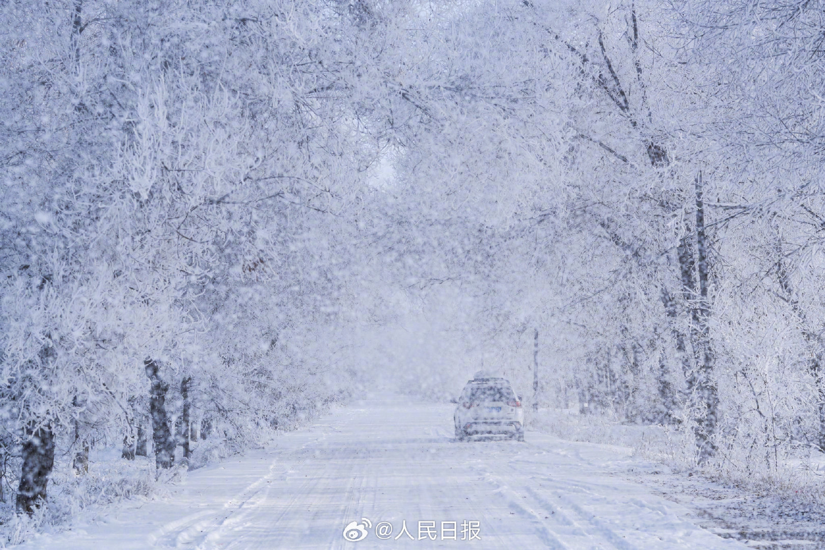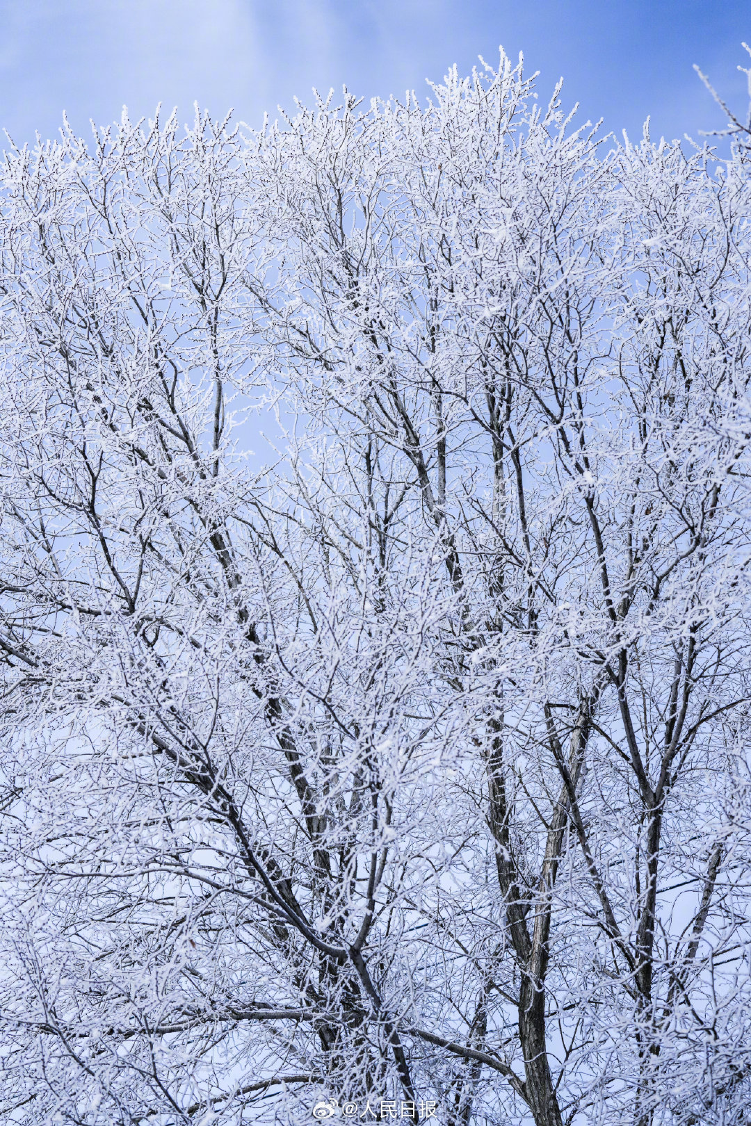 11月30日,新疆昌吉州。随着低温和昼夜温差的变化,在郊区一处林荫道,出现了大范围的雾凇景观。网友:雾凇美景真的好像童话世界!