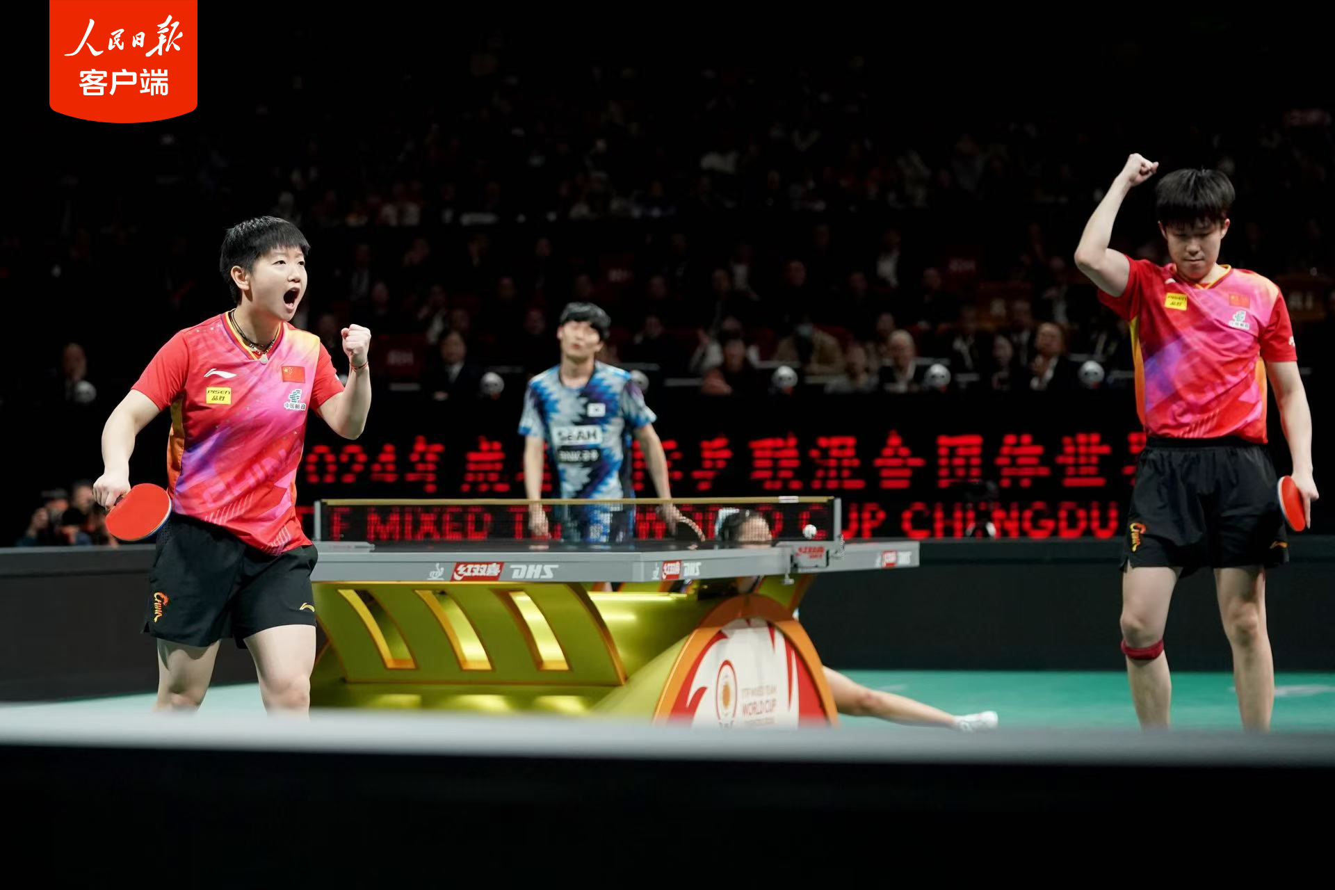 12月8日,2024年国际乒联混合团体世界杯在四川成都迎来收官。在刚刚结束的决赛中,由王楚钦/孙颖莎(混双)、王曼昱(女单)、林诗栋(男单)出战的中国队击败韩国队,以十一场全胜的战绩夺得冠军,成功卫冕。