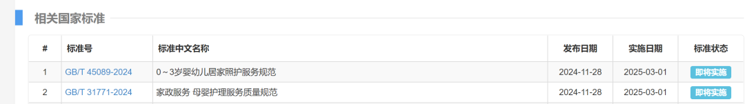 新修订的《家政服务 母婴护理服务质量规范》和《0~3岁婴幼儿居家照护服务规范》两项国家标准已于近日发布,将于2025年3月1日起施行。