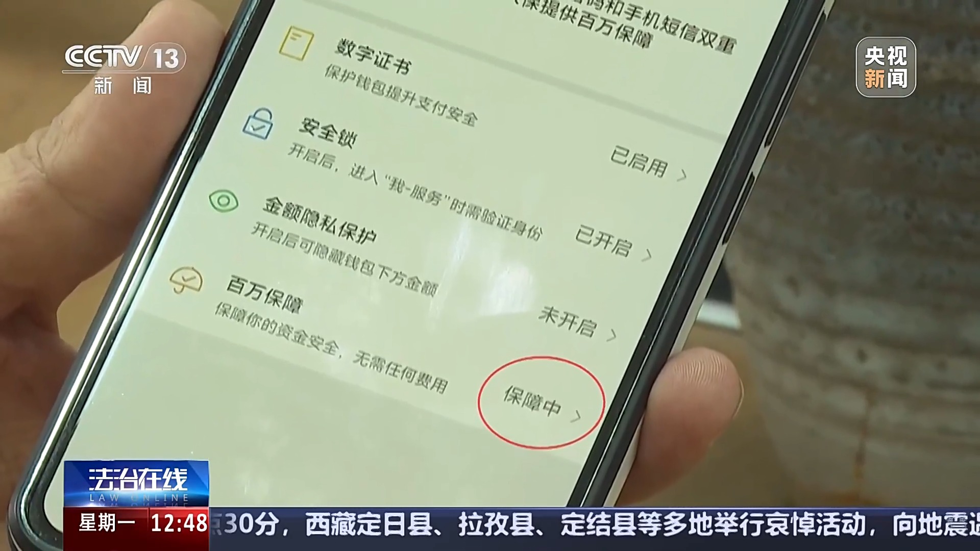西安市公安局碑林分局文艺路派出所民警 李哲:有的被害人此时会不相信,他就会让你在微信上打开一个百万保障,其实这个百万保障是不收费的,是微信自己提供给大家对财产的保障,支付宝上也有类似的,对你个人财产的保障,都是免费的,不收费的。