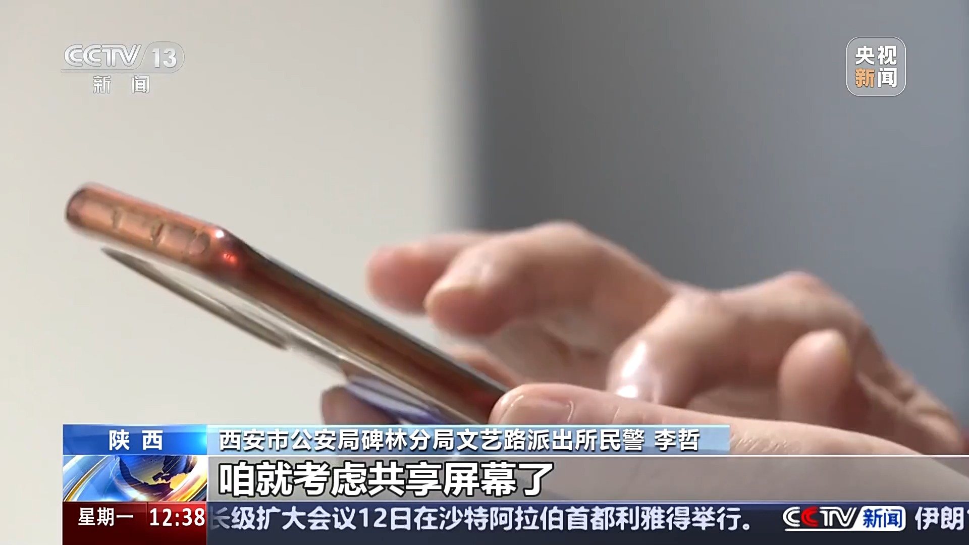 西安市公安局碑林分局文艺路派出所民警 李哲:共享屏幕特点就是两方可以不见面,你下载共享屏幕后,你进入他的会议室,他就能实时看到你在你手机上操作的任何一个步骤,以及你点的每一个按键,他都能看到。
