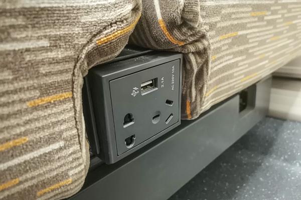 软卧车厢的充电口一般设置在包房内小桌板下方或车厢走廊壁板。