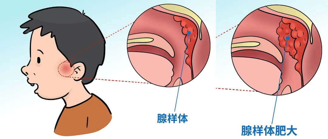 腺样体位于鼻咽穹后部。医生介绍,如果鼻咽腺样体肥大占位,气流会受到限制形成湍流,到软腭部位进行震动,形成鼾声。这会导致儿童白天容易嗜睡,还可能造成嘴唇上翻的腺样体面容,甚至影响生长发育。