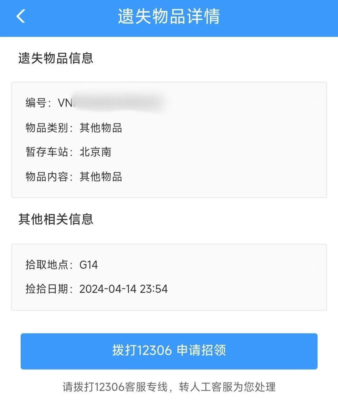 1月25日起,铁路部门将在北京西站、北京丰台站、杭州站、杭州东站、广州站、广州南站等3座城市6个车站试点开展遗失物品线上预约快运送回服务。