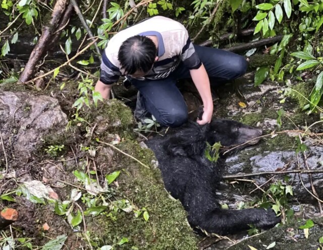 (壶瓶山核心保护区内,1只受伤黑熊得到救治,保住了野外生存能力。 通讯员 摄)