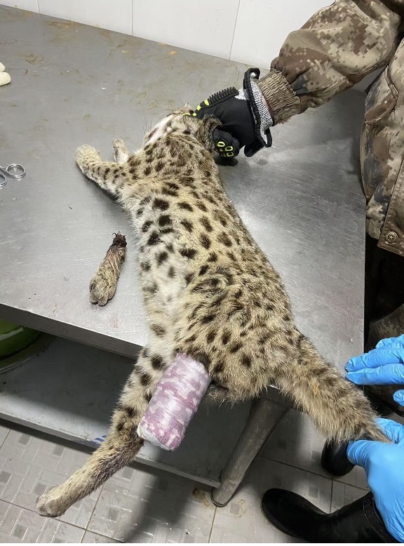 (2025年2月初,豹猫“2025-013”截肢手术成功。 通讯员 摄)