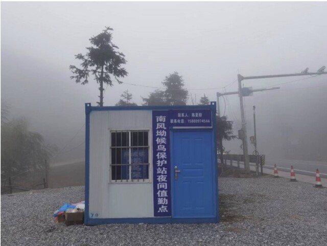 (蓝山县在南风坳“千年鸟道”设立集装箱房屋护鸟值守点。 彭雅惠 摄)