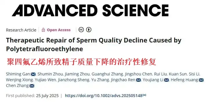 2025年7月,浙江大学医学院附属第四医院生殖医学中心黄荷凤院士团队联合复旦大学附属妇产科医院、重庆医科大学、第三军医大学等多家医院发表在《先进科学》(Advanced Science)期刊上的一项研究发现:厨房常用的不粘锅,其涂层材料聚四氟乙烯(PTFE,俗称“特氟龙”),会在高温下会释放有害物质,接触后会显著降低精子质量,甚至影响生育能力。