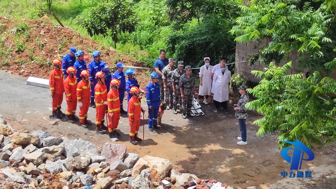 演练模拟陈家湾村何家盘因持续降雨,诱发山体滑坡,造成多间房屋受损倒塌,一名群众被埋压,现场情况十分紧急。