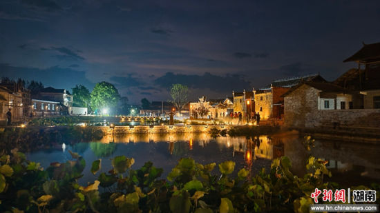 荆坪古村三叠月塘夜景。 陈攀 摄