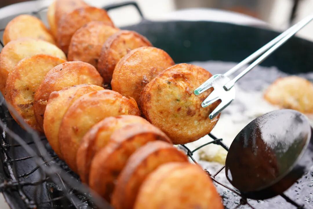 米粉之外,怀化还是粑粑王国。辰溪粉糍粑捶打百次,溆浦白丝糯糍粑能拉三尺长,会同花醮粑印着吉祥纹,侗乡灰水粑带草木香。稻田边现打的糍粑裹黄豆粉红糖,糯甜喷香;枕头粽比臂粗,灯盏窝外脆里软,马打滚滚满黄豆粉——逢年过节,粑粑就是怀化人的仪式感。