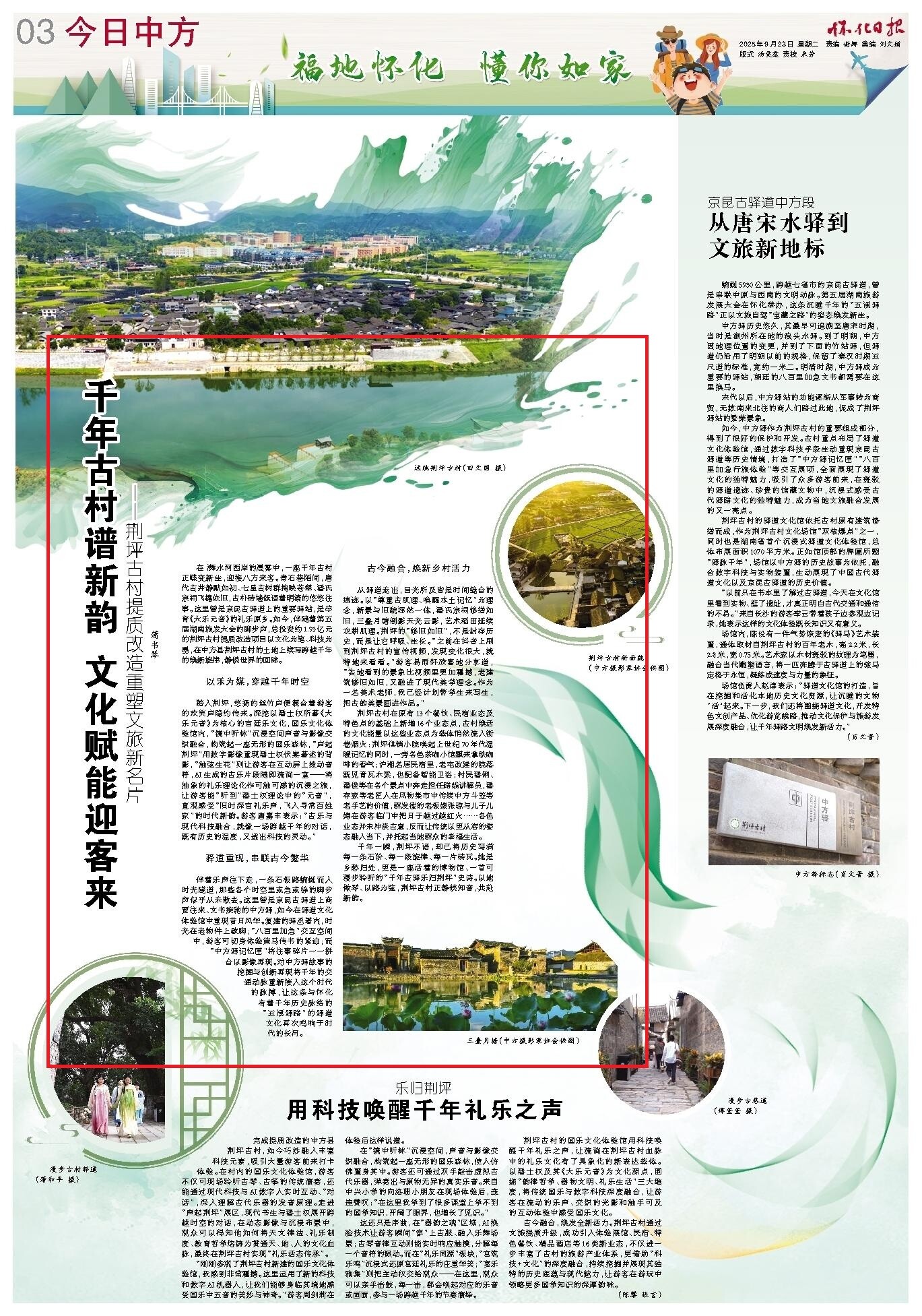 在氵舞水河西岸的晨雾中,一座千年古村正蝶变新生,迎接八方来客。青石巷陌间,唐代古井静默如初、七星古树群掩映苍翠、潘氏宗祠飞檐依旧,古朴砖墙低语着明清的悠悠往事。这里曾是京昆古驿道上的重要驿站,是孕育《大乐元音》的礼乐原乡。如今,伴随着第五届湖南旅发大会的脚步声,荆坪古村提质改造项目以文化为笔、科技为墨,在中方县荆坪古村的土地上续写跨越千年的焕新旋律,静候世界的回眸。